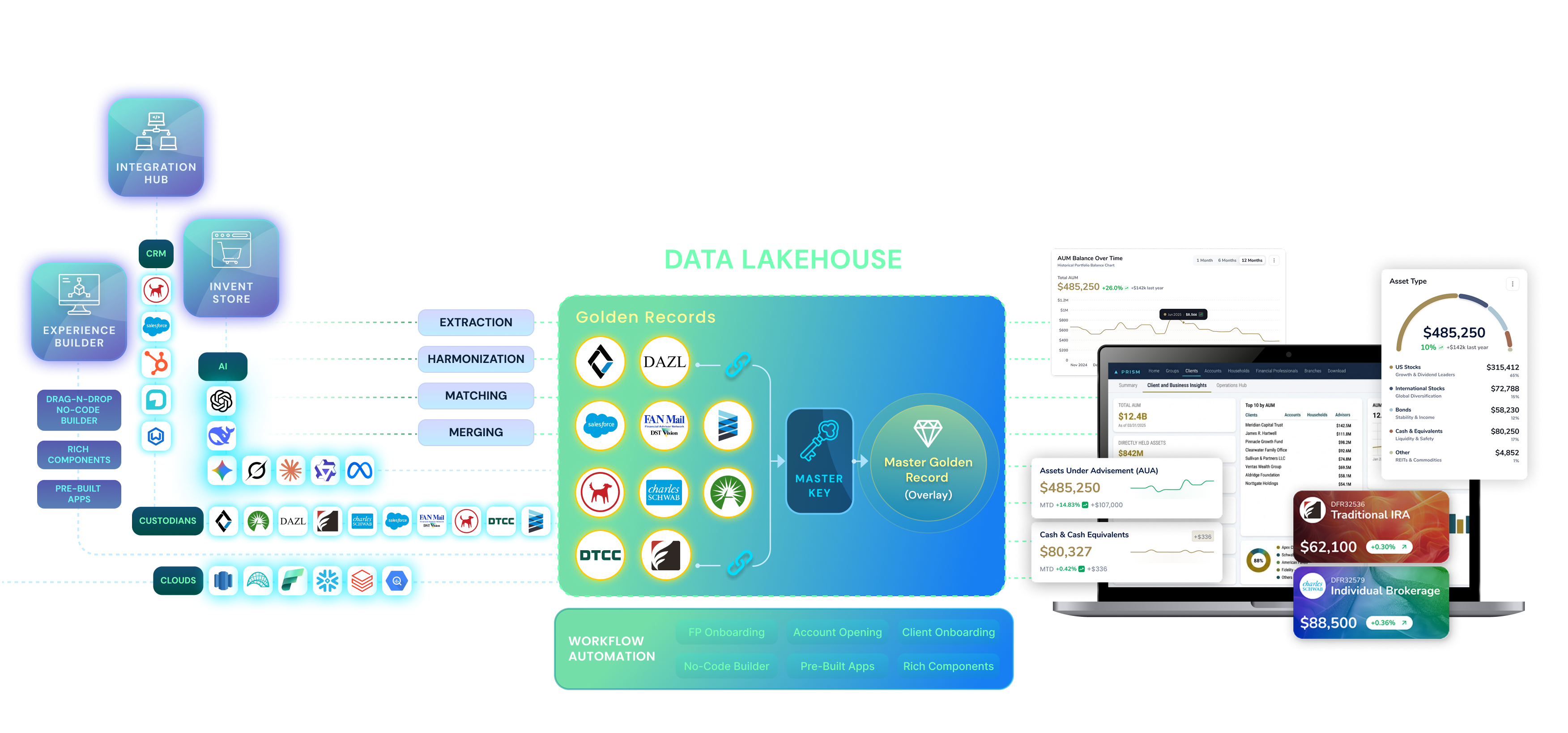 Data fragmented across CRM and custodial systems.